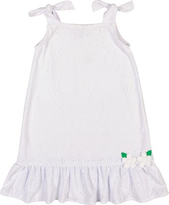 Light, breezy, and vacation-ready, this white knit eyelet coverup is crafted from soft 100% polyester for comfort in the sun. Faux tie shoulders add a sweet, feminine touch while keeping the look effortless and easy to slip on over swimsuits. Perfect for poolside lounging, beach adventures, or sunny resort days, it’s the ideal layer for warm-weather play and picture-perfect moments.
