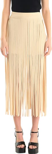 Love to twirl, swing and shimmy in this soft knit skirt made with lengthy cutout fringe that shows off your legs with every step.