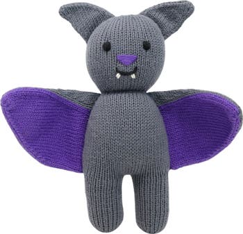 Meet the cutest little bat in town, the perfect companion for Halloween fun! This soft and snuggly knit bat toy features a gray body with contrasting purple wings, making it an adorable addition to any Halloween-themed decor or gift. Its sweet face, complete with tiny fangs and a purple nose, adds a touch of spooky charm without being too scary, making it ideal for little ones. Crafted from high-quality, soft yarn, this bat toy is perfect for cuddles or as a playful Halloween decoration.