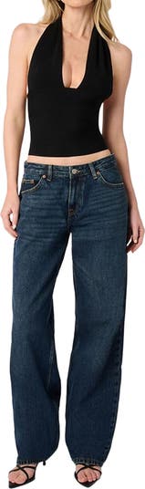 - This fitted open-back top is designed in a knit fabric, with a deep v-neck and a twisted halter detail Open back Twisted halter neck detail Fitted Deep v-neck Hand wash cool water. Do not bleach. Do not tumble dry. Hang to dry. Iron cool.