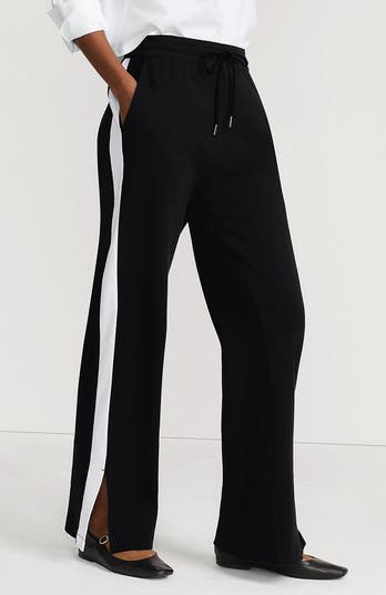 Knit High Rise Relaxed Straight Leg Side Stripe Pants