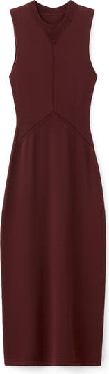 Sleek and easy, this sleeveless knit midi dress is cut in a column silhouette for a long, clean line. A seamed bodice adds subtle structure, while ribbed trim brings texture and definition that's perfect for day or evening.
