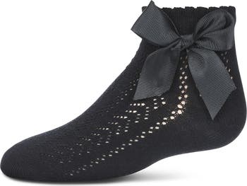 Practically Perfect in every way - our Openwork Bow Anklet Socks are delicate, dainty, and a fabulous addition to any of your little one's outfits. Knit-in pointelle design is classic and stylishly feminine for any occasion, with an added bow for a super cute flair. But don't let their good looks fool you, these socks are just as durable as they are adorable; made from a breathable and soft cotton blend to ensure a comfortable wear and secure fit.