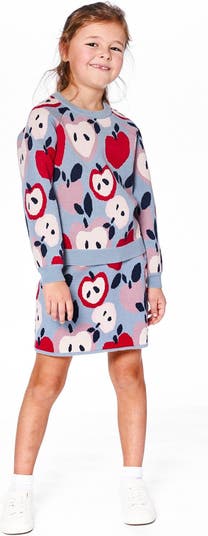 Deux par Deux Knit Skirt with Apple Heart Jacquard, Alternate, color, Blue And Red