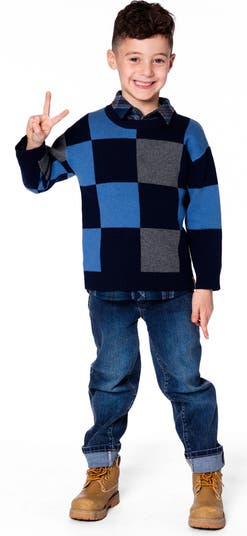 A pattern gives this pullover a classic look with a contemporary edge. With long sleeves and a crew neckline, this cotton blend sweater features a comfy pullover silhouette with an allover color blocked design and solid rib knit trim at the neck, cuffs, and hem.