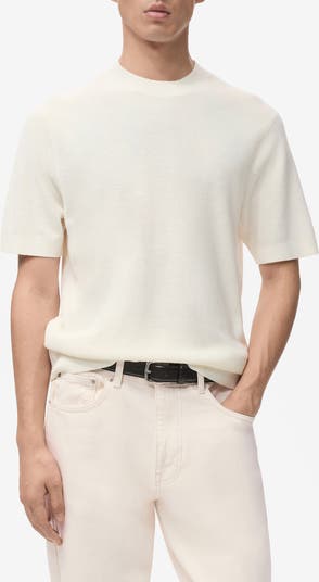 A lightweight, sweater-like knit fabric elevates the style of this short-sleeve T-shirt that easily goes from work to your evening plans.