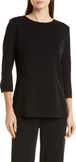 Every closet craves this wardrobe-workhorse tunic crafted from wrinkle-resistant fabric and framed by three-quarter sleeves.