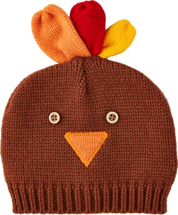Keep your little one feeling cozy and looking adorable in this knit turkey hat topped with colorful feathers.
