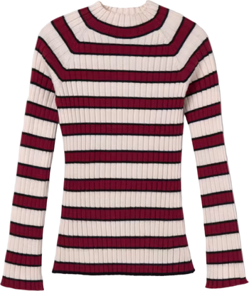 - Long-sleeve sweater with horizontal stripe pattern