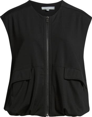 Give your everyday look a sporty layer with this zip-up vest made in a bubbly silhouette from a lightweight and stretchy ponte knit.