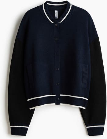 Loose-fit baseball jacket in a fine, sturdy knit with a ribbed collar and press studs down the front. Dropped shoulders, welt side pockets and ribbing at the cuffs and hem.