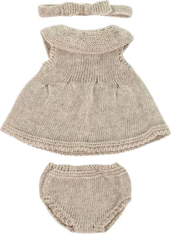 These cozy knit outfits are perfectly sized for 12 5/8" Miniland baby dolls and bring warmth and charm to any doll wardrobe. Made in Spain from recycled materials, they're part of Miniland's sustainable knitwear collection, designed in soft, earthy tones with a handcrafted look.