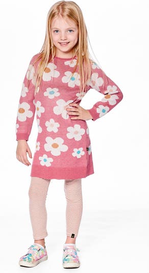 This charming Knitted Dress With Flower Jacquard Old Pink and Beige is perfect for her playful days! Made from a cozy and soft knitted jersey, the dress features a beautiful jacquard pattern with flowers in soft tones of old pink and beige. The relaxed fit, long sleeves, and ribbed trims add comfort and warmth, while the textured knit brings a fun, stylish vibe. Ideal for any occasion, this dress will pair effortlessly with our leggings or tights from the "The Sixties Are Back" collection, making it the go-to piece for her wardrobe.
