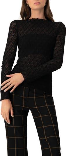 Elegant black knitted blouse featuring long sleeves and a round neckline, perfect for versatile styling.