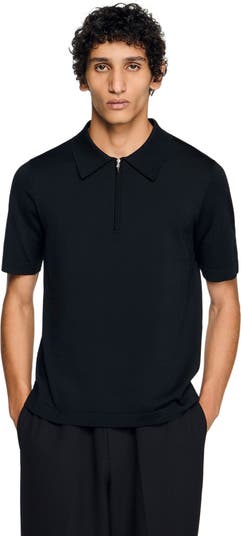 Knit polo shirt with zip-up shirt collar and short sleeves. Straight fit