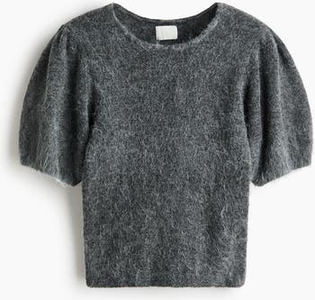 Short, fitted top in a soft, brushed knit with a round neckline and short puff sleeves.