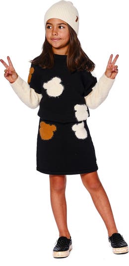 Our Knitted Skirt Black With Bear Intarsia is cozy, playful, and packed with personality. This flared knit skirt features two fuzzy-textured jacquard bear heads in contrasting tones on the front, adding a whimsical twist to a comfy silhouette. Pair it with any top from our "Teddy Bears Are Ours" collection for a charming and cuddly look.