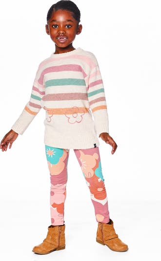 This Knitted Tunic Off-White With Stripes is like a warm hug wrapped in style! Crafted from a soft blend of recycled polyester, wool, and elastane, this knitted top offers a perfect balance of warmth, stretch, and softness for all-day comfort. The long sleeves and ribbed trims combined with a classic off-white color, multicolored stripes and two flowers on the front bring a cozy, chic look, while the relaxed fit makes it ideal for effortless styling. Pair it with leggings or skirts for a laid-back yet stylish outfit.
