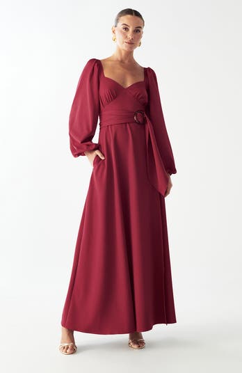 The KNOLL MIDI DRESS by WILLA is a dramatic evening piece that marries vintage-inspired elegance with contemporary design. Its deep crimson hue and sweeping lines create an instantly captivating statement, perfect for elevated occasions that demand refined sophistication