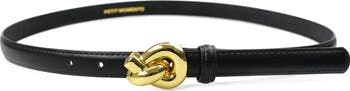 A golden knot grounds this slender belt that's crafted from smooth faux leather in a minimalist design.