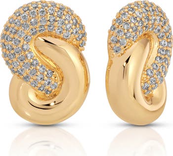 Pavé crystals add stunning sparkle to these elegant knot earrings plated in 18-karat gold.
