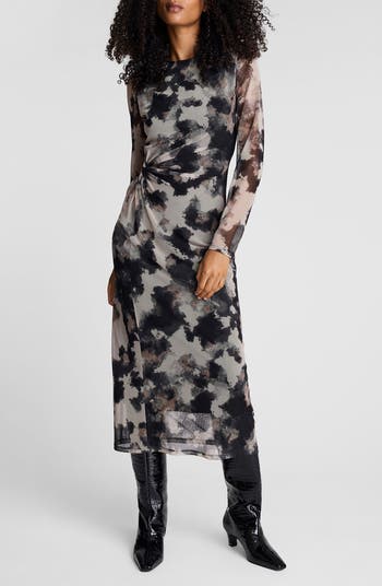 Subtle gathering at the side adds an element of texture to this airy mesh dress featuring a dreamy abstract print.