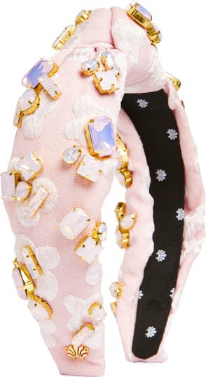 With its collection of faceted gems and brocade flowers, this knot-centered silk headband is a sweet addition to your easy 'do.