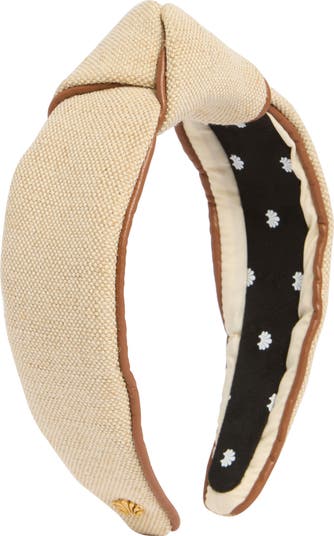 Faux-leather trim complements the soft fabric shell of this knotted headband that's the perfect finishing touch to your sunny, warm-weather looks.