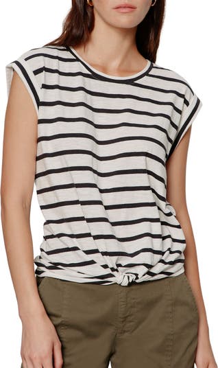 A jaunty knotted waist and cuffed dolman sleeves ready you for weekend adventures in this lightweight cotton-blend T-shirt.