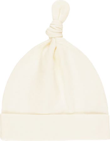 Soft as a lullaby and light as a cloud, the stretch-cotton knit of this knotted hat cushions tiny foreheads and ears with warm, breathable comfort. Tie the top to tailor the fit as milestones arrive so it stays practical, adorable and photo-ready.