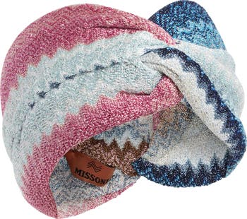Iconic zigzags lend signature texture to a beautifully knit headband embellished with metallic threads for playful shimmer.
