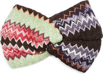 Iconic zigzags lend signature texture to a beautifully knit headband embellished with metallic threads for playful shimmer.