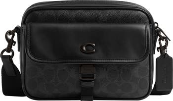 Made in a boxy silhouette from signature coated canvas and smooth leather, this modern take on vintage athletic bags features plenty of organizational pockets inside and out. Tonal C hardware and a branded squeeze buckle add heritage Coach touches.