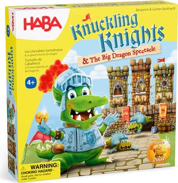 "Step into the magical world of knights, dragons, and castles with Dragon Knuckling Knight! This exciting and dynamic game invites families to gather for a night filled with fun, strategy, and a little chaos. The adventure begins as Dragon Knuckling Knight opens his castle for a grand spectacle, where excited knights crowd the towers, eagerly awaiting their turn to tumble through secret doors. Players must navigate the playful chaos, collecting coins along the way while avoiding the splash of water. The beautifully crafted 3D castle setup adds a captivating visual element, immersing players in the action and making the game feel larger than life. This game features two unique ways to play, offering endless entertainment for players of all ages. Younger kids can enjoy the simple and engaging rules, while older children can dive into the additional challenges designed for players aged 5 years and up. Whether you're searching for games for kids ages 6-8 or board games for 5-year-olds, Dragon Knuckling Knight offers the perfect balance of fun and skill-building. With its easy-to-learn rules, Dragon Knuckling Knight is ideal for family board games for kids and adults. Its combination of strategic gameplay and lighthearted surprises ensures that everyone, from kids to parents, stays engaged. The board games for kids 6-8 playful mechanics of tumbling knights and coin collection keep players on their toes, creating laughter and excitement in every round. Whether you're looking for a dragon board game, kids board games, or a new favorite family games for kids and adults for family night, Dragon Knuckling Knight delivers a thrilling adventure you won’t forget. Gather your family, prepare your strategy, and see who can emerge victorious in this grand castle challenge!"