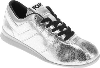 Bob and weave through any outing or adventure in PONY’s KO-Low Vintage Metallic sneakers. Paying homage to PONY’s original boxing collection, these women’s sneakers feature cracked metallic leather uppers and a low-profile rubber outsole. The sleek lines, subtle branding, and iconic chevron add a bit of polished sports style to any outfit. Ready to roll with the punches, these shoes highlight exceptional craftsmanship and feature soft leather interior lining and a comfort-molded footbed for long-lasting comfort and support. The eye-catching metallic materials and retro-inspired, low-top design create a winning combination for any occasion.