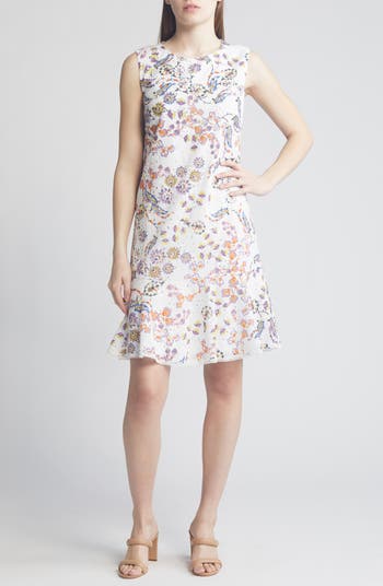 Softly embroidered broderie-anglaise details lend lots of texture to this cotton dress patterned in bold blooms.