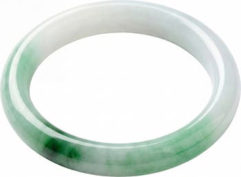 A skinny white round bangle in mottled green shade. Perfect for stacking together or with your gold ones. Natural quartzite. Made by handwork of carving and polishing.