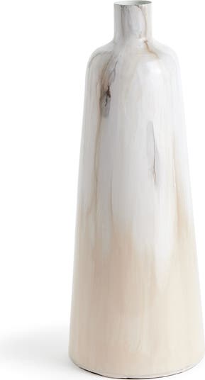 In a clever use of enameled iron, this lightweight decorative vase is painted by hand. With a creamy mocha palette inspired by a latte, with layers of milky froth and coffee tones swirling, it is modern artistry defined.