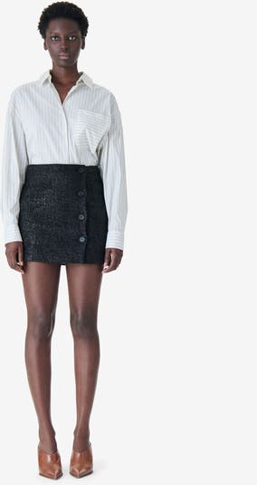 The Konia Tweed Button-Front Mini Skirt captures effortless Parisian charm, featuring a luxe Lurex tweed sourced directly from Paris that offers a subtle, sophisticated shimmer with every movement.