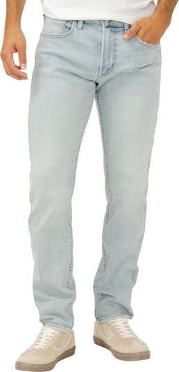 Slim from waist to hem, these modern jeans are made from low-stretch denim in an everyday light-blue wash for casual, versatile style.