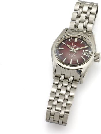 Elegance meets personality in the Eterna Kontiki Women's Automatic Watch Stainless Steel Bordeaux Dial 26mm. The refined dial catches the light with deep nuances, while luminescent indexes and spheres maintain a sober and functional style. The steel case encloses the automatic movement Eterna 12671. A refined classic, a symbol of precision and timeless character, typical of Fortela's style.