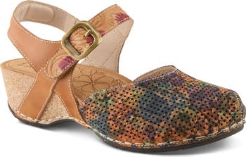 Hand-painted leather brings eye-catching color to a stylish pump designed with a cushioned footbed, chunky cork sole and adjustable ankle strap for comfort.