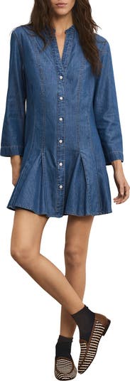 Korinda Godet Pleat Long Sleeve Denim Dress