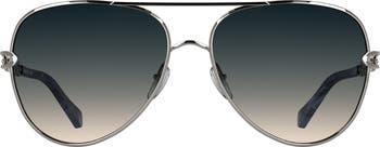 A faceted chain pattern adds a signature flourish to the temples of retro-cool aviator sunglasses featuring gradient lenses and adjustable nose pads for a secure fit.