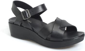 An earthy cork platform adds to the throwback appeal of a versatile ankle-strap sandal fashioned with a signature comfort footbed.