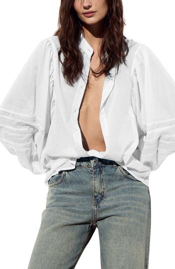 Lacy insets at the sleeves amplify the vintage-chic vibes of this flowy cotton shirt