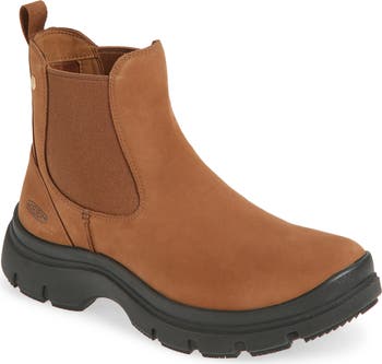 Hit the trails or the streets in this waterproof leather Chelsea boot boasting arch-supportive cushioning and a water-channeling KEEN.WET TRAX grip sole. A heel-to-toe contoured KEEN.CURVE design provides forward propulsion, while the built-in shank delivers lightweight stability.