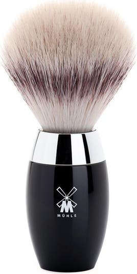 Shaving brush with Silvertip Fiber Ring size M: 21 mm to unscrew Handles made of high-grade resin with chrome-plated metal highlights The Material - High-grade resin High-grade resin is a high-quality synthetic material, the surface of which is processed and refined separately. The material is ideal for exclusive accessories and writing implements because it facilitates a broad spectrum of modern and classical designs in many attractive colours. To begin with, the aesthetic basic shapes for brush and razor handles are turned out of solid rods. Then each individual work piece is polished in several passes to give the surface its special gleam. This processing method lends the models a pleasant feel and secures their beauty for many years to come. Without chrome the world would forfeit a lot of its lustre. In the finish used for our wet shaving accessories it demonstrates its best qualities: The material is corrosion-resistant, very long-lasting and has a luxurious, alluring lustre. When contrasted with this, the colours and shapes of other premium materials are shown to their very best advantage. The Brushhead - Silvertip Fiber The high-quality synthetic Fibers represent a world first of our own invention. We offer a synthetically produced premium quality whose material characteristics are analogous to those of the precious natural hair, silvertip badger. The majority of the users even say that this quality actually provides better performance characteristics than the natural hair. 'Silvertip Fiber' is very soft at its fine tips, but somewhat more stable than natural hair in the middle section. These characteristics produce a pleasant, soft sensation on the skin when the lather is applied, without having to forgo the desired firmness of the hairs in the lathering process. In daily use, the manually processed Fibers are less sensitive than natural hair as they dry more quickly and are resistant to shaving soaps and creams. The completely vegan Fibers are also somewhat easier to use than natural hair as they produce a particularly creamy and thick lather from a small amount of shaving soap or cream, which is used much more sparingly as a result.Measures: Dimensions: 35 mm x 110 mm Weight: 100 g
