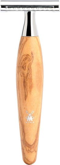 Closed Comb Safety Razor with Classic Blade Handles made of olive wood with chrome-plated metal highlights The Material - Olive wood Since ancient times, olive wood has been valued for its outstanding material characteristics and warm coloring. It is to be found throughout the Mediterranean region and has been used for centuries to make durable goods or artistic objects. The wood we use must be dried carefully for months before the handles are turned. We then sand the surfaces, seal them with oil and polish them to a silky finish. This brings out the gentle, honey-colored grain of the wood particularly well. Without chrome the world would forfeit a lot of its lustre. In the finish used for our wet shaving accessories it demonstrates its best qualities: The material is corrosion-resistant, very long-lasting and has a luxurious, alluring lustre. When contrasted with this, the colors and shapes of other premium materials are shown to their very best advantage. The Razorhead - Classic blade For generations, the safety razor has been regarded as a stylish classic which can even shave edges with precision. For many, it is the razor par excellence. Its styling is ideally suited to the design of the MÜHLE products. Even if the open blade does demand a little respect at first: After a brief familiarization period, and guided by a steady hand, it produces a very close shave and a lasting result. Unlike modern blade systems, the head of the safety razor does not move. The blades are replaced by unscrewing the cap. They can be purchased from us and by retailers everywhere. We recommend our rust-proof MÜHLE razor blades which are the perfect match for our safety razors.