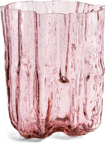 Handmade and mouth-blown in Sweden, this crackly glass vase embraces imperfection and adds a whimsical accent to any room, with or without flowers.